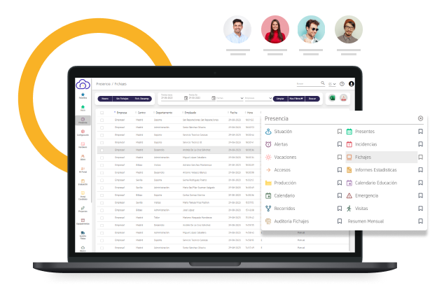 Podrás importar los fichajes a Excel y PDF así como realizar listados completos y personalizados. Para una consulta rápida, dispones de vistas automáticas del día actual y entre fechas o periodos donde verás en una única pantalla todos los empleados presentes y ausentes. Tu empresa llevará un perfecto control del registro de jornada, garantizando una administración impecable de la asistencia de tus empleados.