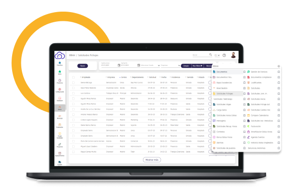 Nuestra solución de registro de jornada simplifica la gestión de las solicitudes recibidas en RRHH por parte de los empleados. Desde vacaciones y permisos hasta horas extras, cambios de horario, viajes y más, brindamos un sistema completo para facilitar la comunicación entre empleados y el departamento de Recursos Humanos.